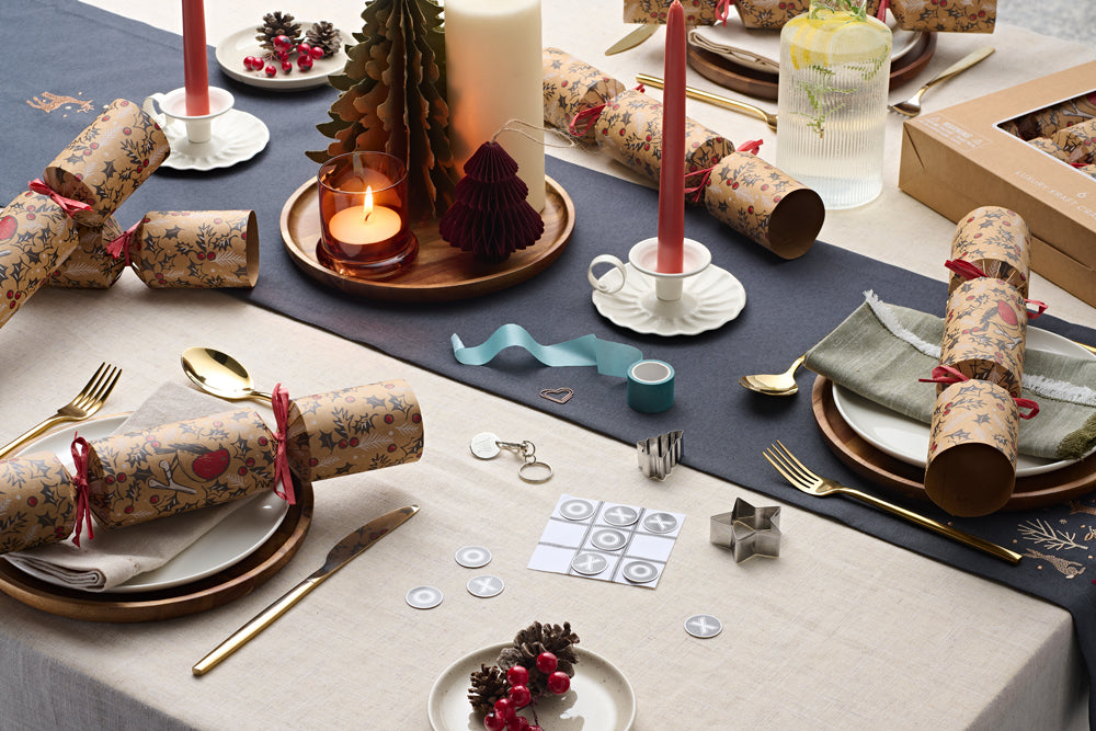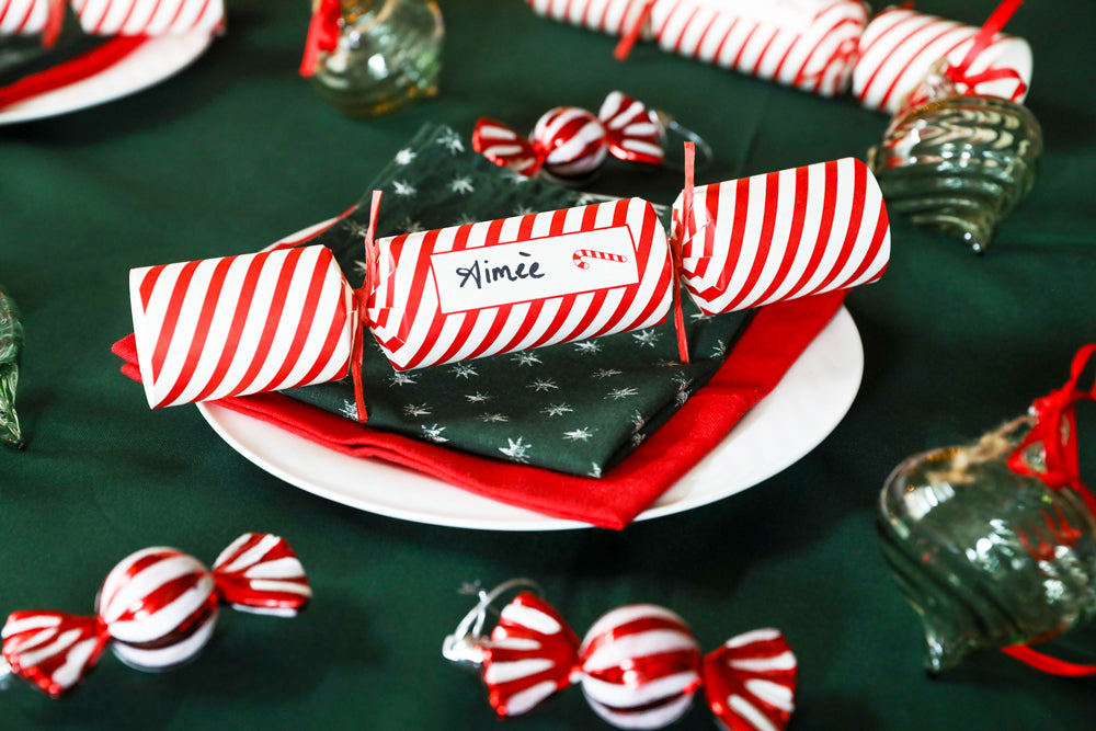 Designed with a thoughtful touch, each cracker features a space to write guests’ names, doubling up as both festive decor and a personalized place card.